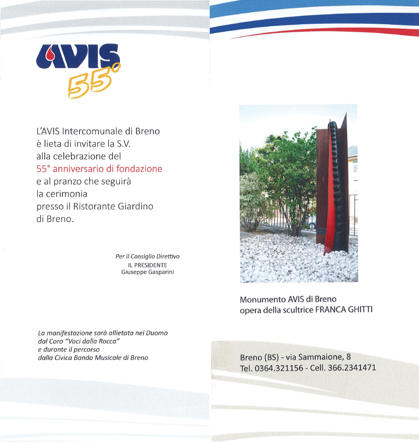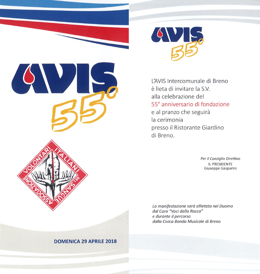 L'AVIS intercomunale di Breno è lieta di annunciare la celebrazione del 55° anniversario di fondazione per Domenica 29 Aprile 2018