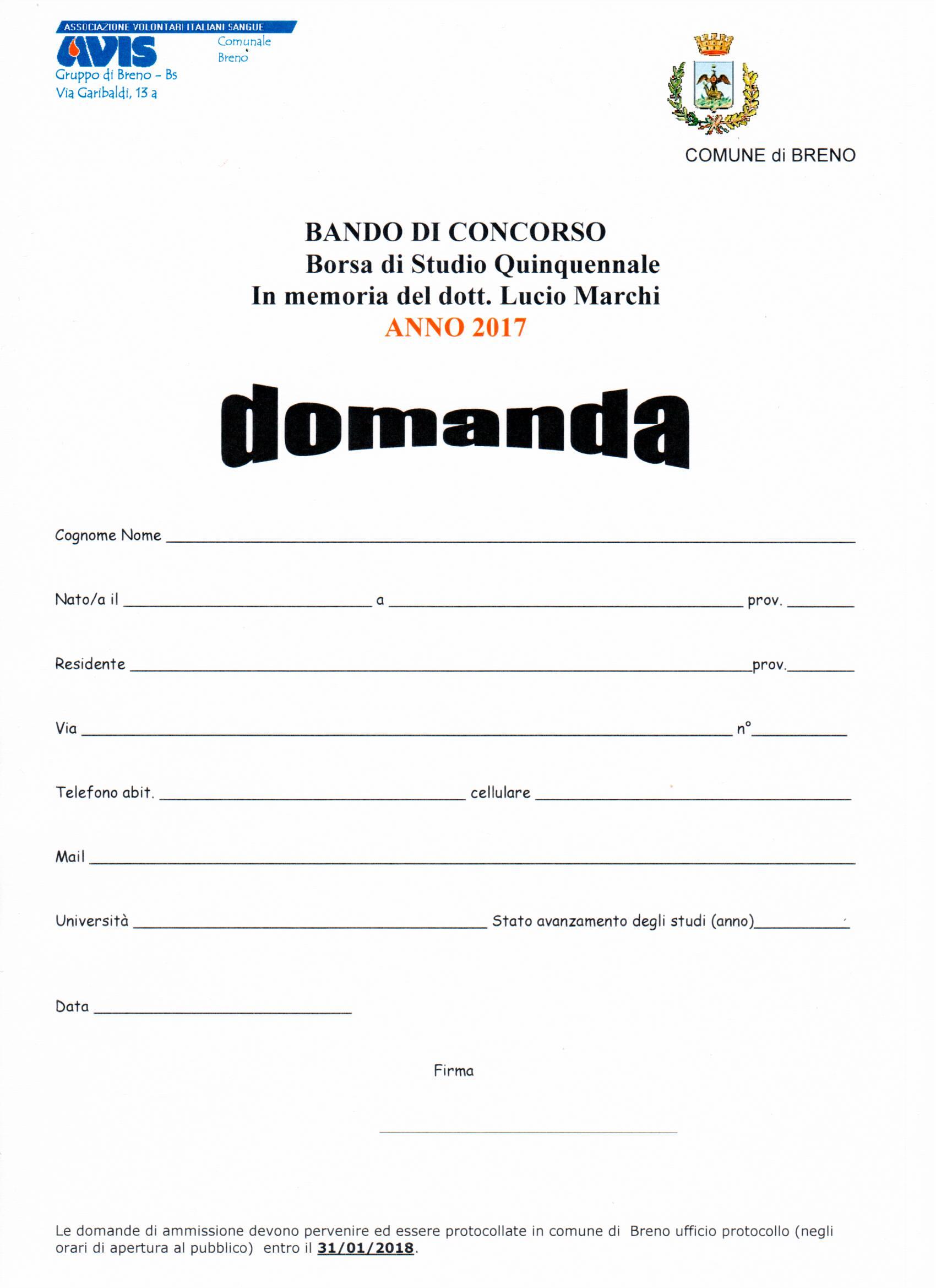 Scarica la domanda relativa al bando